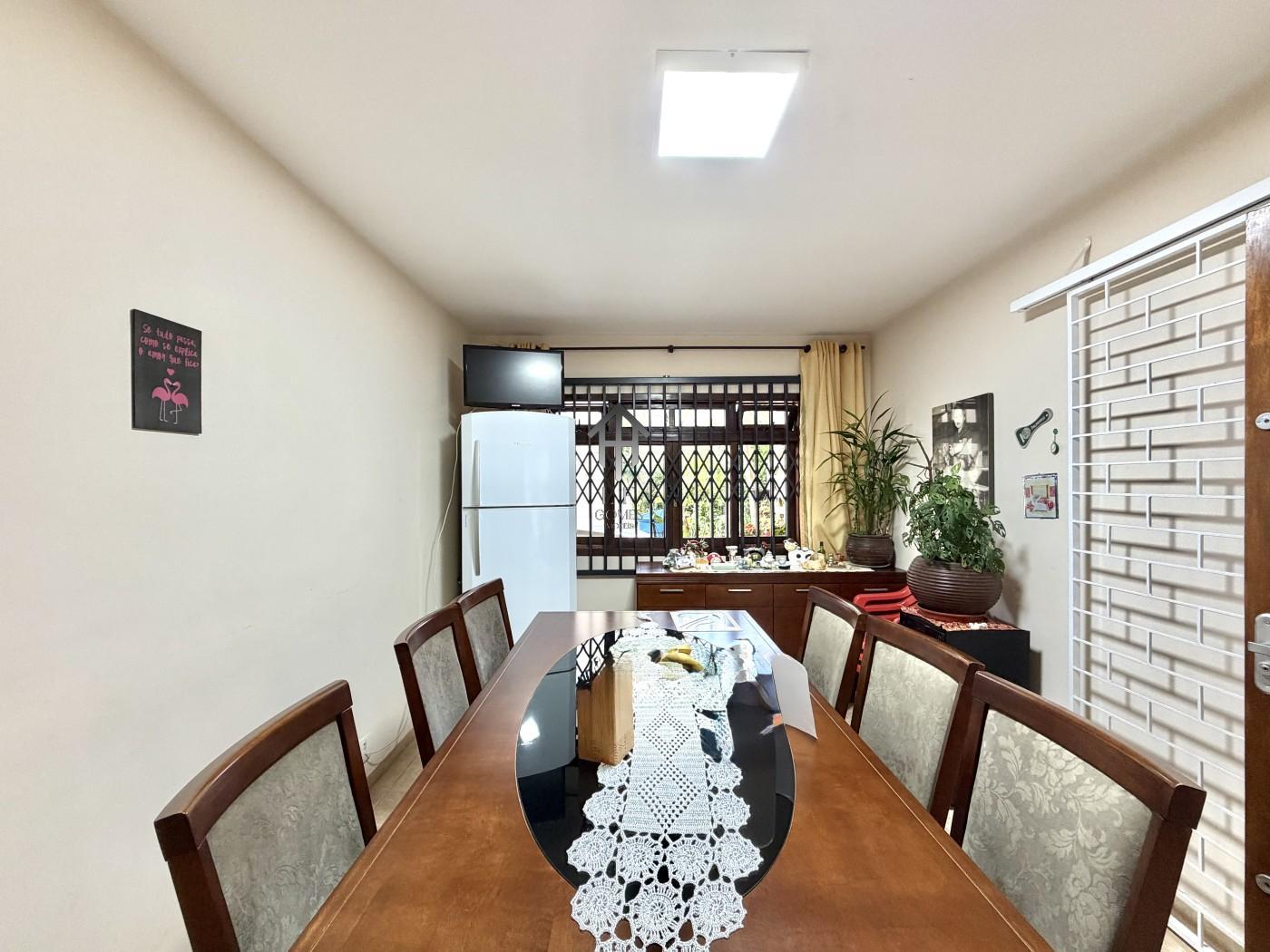 Imóvel contém ampla sala de estar, sala de jantar, cozinha, área de serviço, banheiro social, quatro dormitórios sendo uma suíte, espaço gourmet com churrasqueira a carvão, um ampo espaço de quintal livre, aproximadamente 125m de quintal, vaga de garagem para uns cinco veiculos sendo dois cobertos.