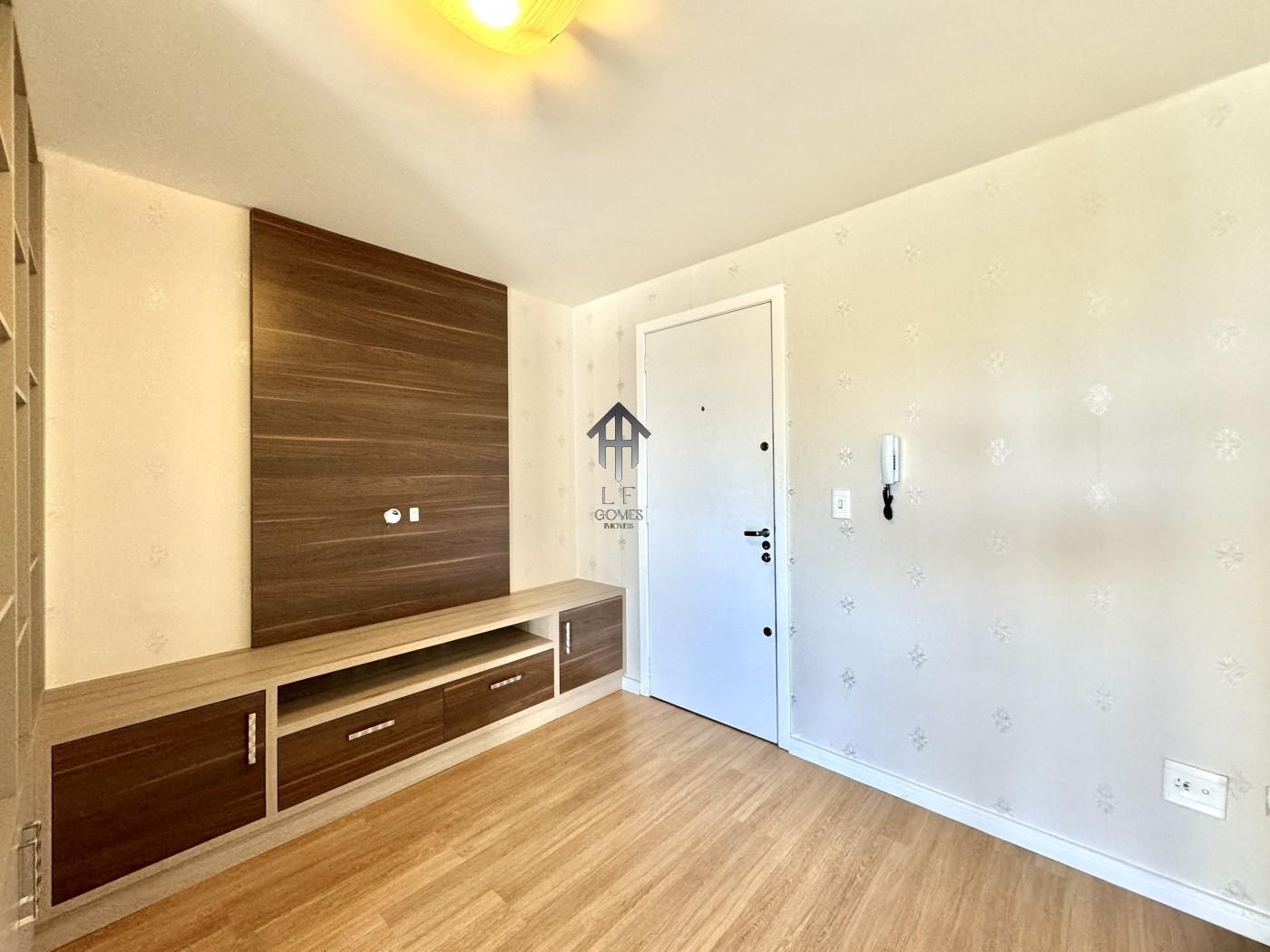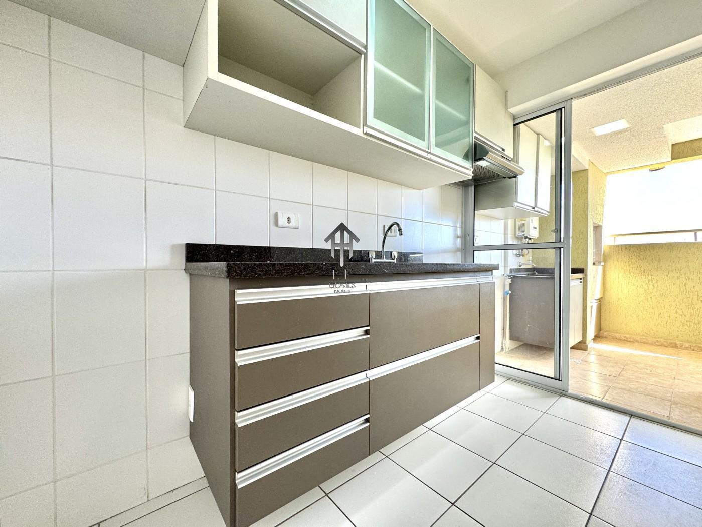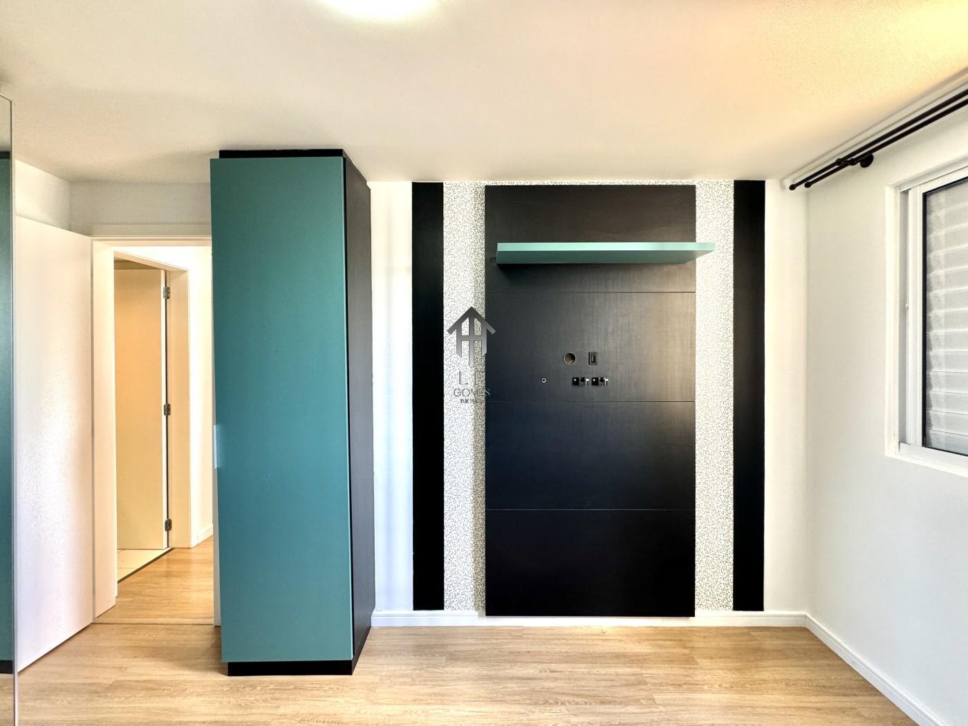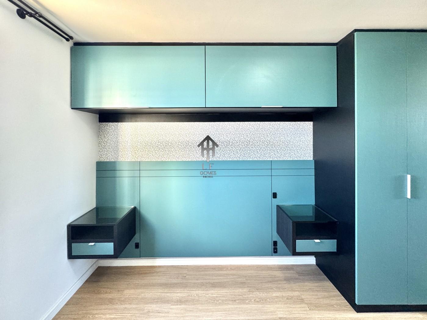 Imóvel contem sala ampla para três ambientes com móveis planejados, painel de tv instalado, cozinha com móveis sob medida, dois dormitórios sendo de casal com móveis sob medida, banheiro social, sacada gourmet com churrasqueira a carvão e vaga de garagem coberta para um veículo.
