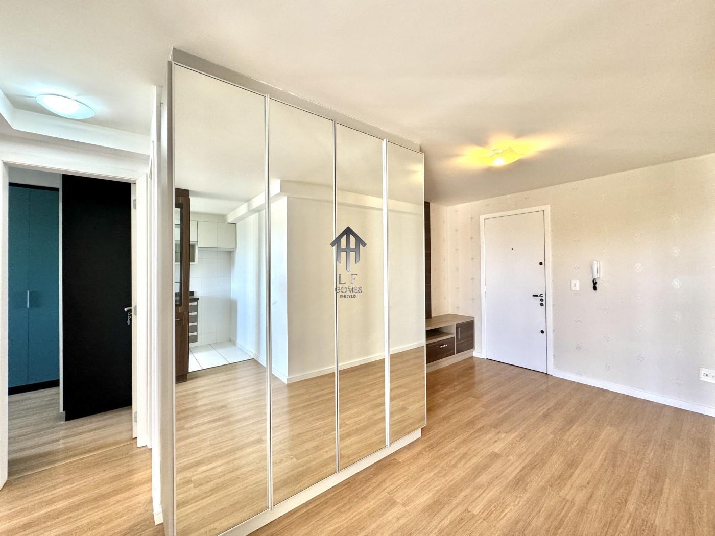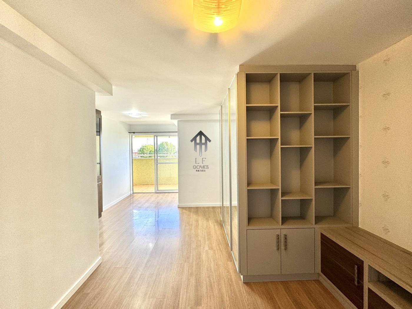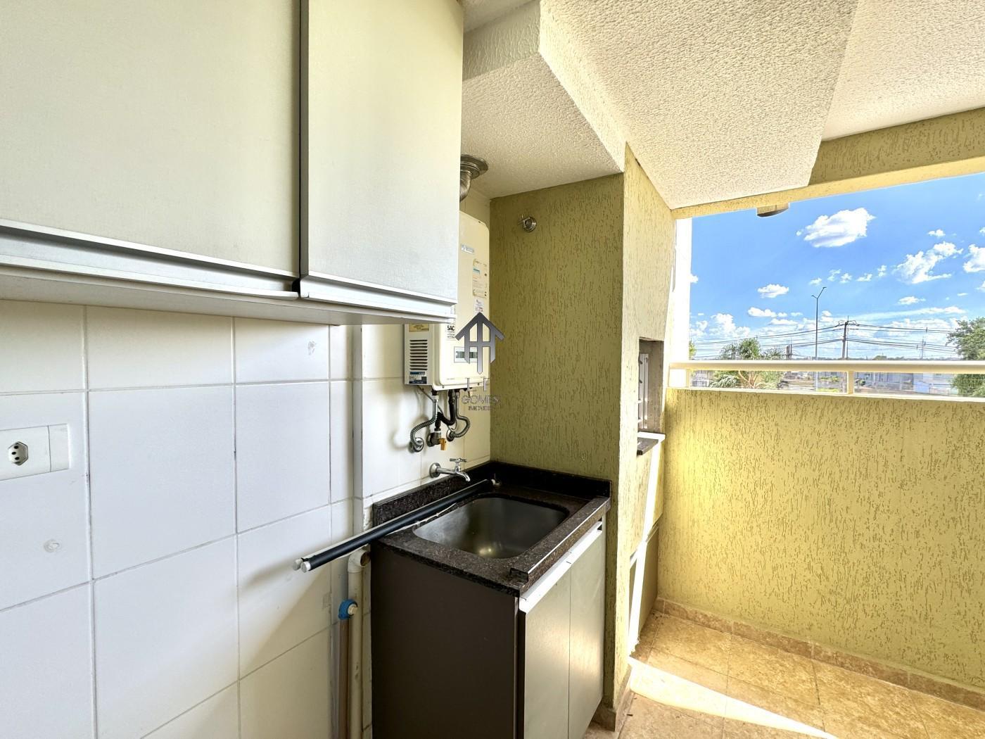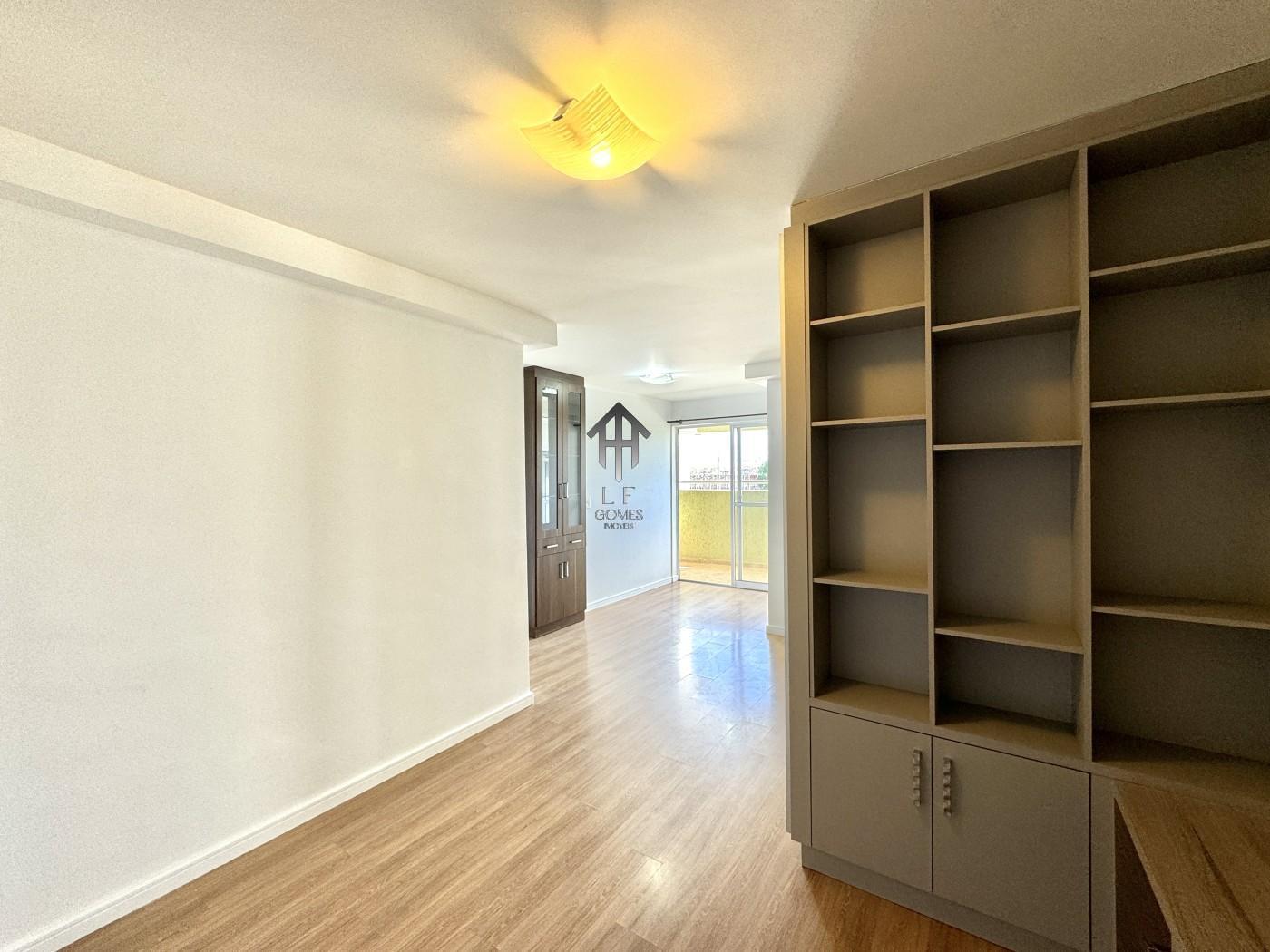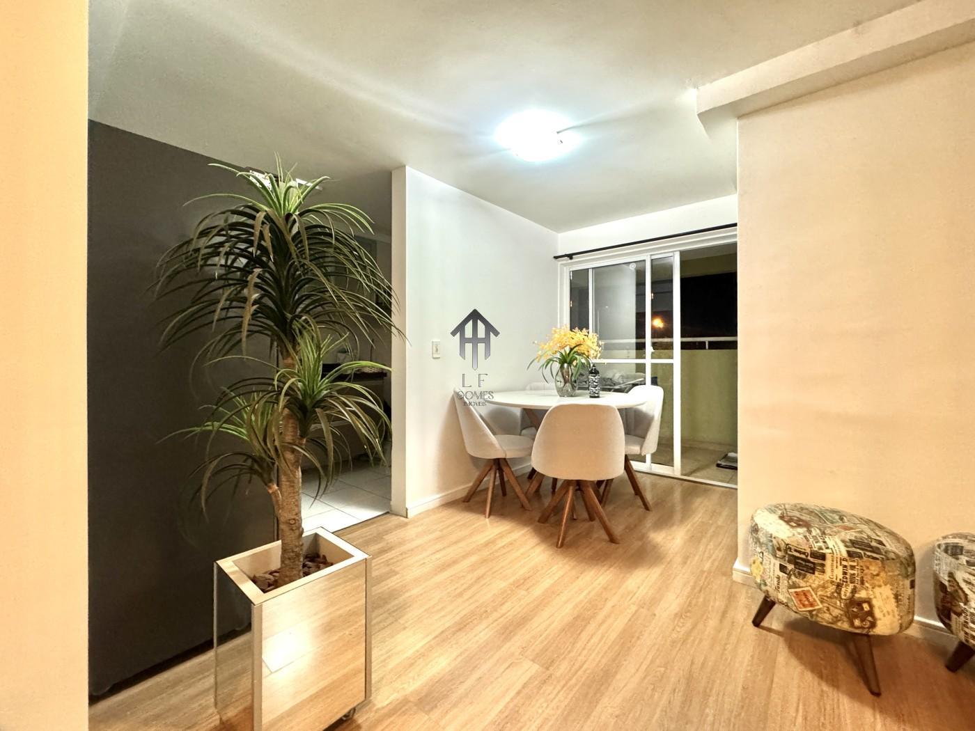 Imóvel contem sala ampla para três ambientes com móveis planejados, painel de tv instalado, cozinha com móveis sob medida, dois dormitórios sendo de casal com móveis sob medida, banheiro social, sacada gourmet com churrasqueira a carvão e vaga de garagem coberta para um veículo.